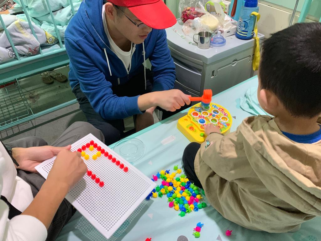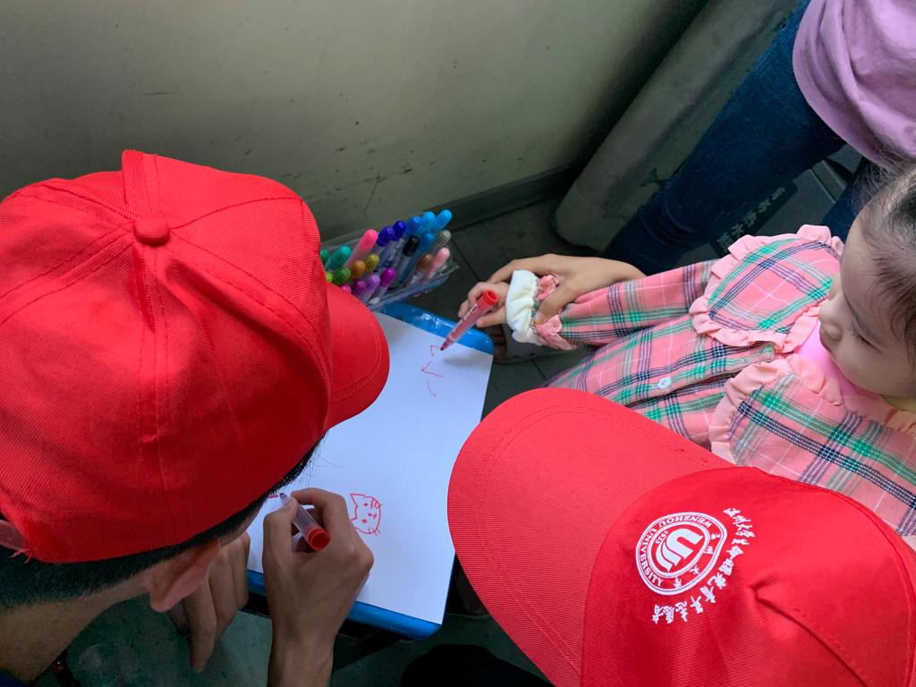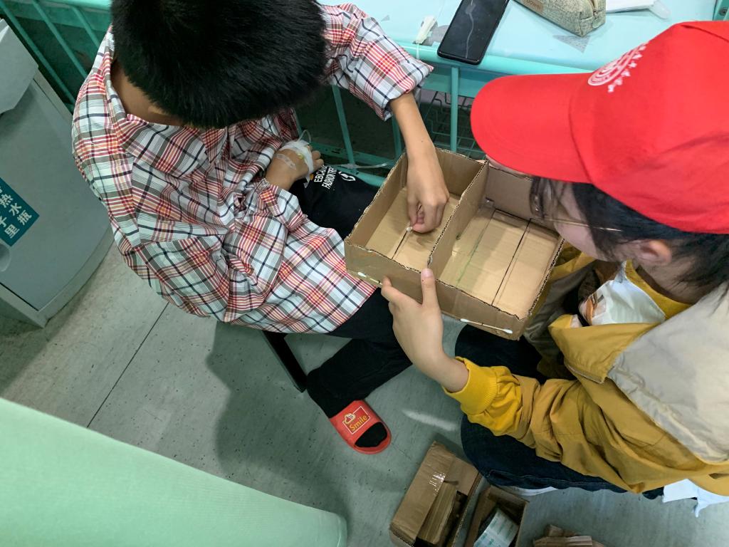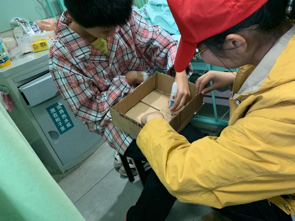 12:50左右,志愿者们不惧风雨相聚于伟德国际1946源于英国南大门。在清点好人数并于志愿汇签到完成后,志愿者们撑伞徒步至公交车站乘坐40路公交车前往附二医本部。些许是按捺不住内心的激动,总觉得乘车时间该短些,短些,再短些。终于抵达附二医心血管疾病儿科,通过护士姐姐的帮助,志愿者们有序地分组进入病房陪护孩子。亲切的微笑、温暖的问候模糊了分明的界限,志愿者们很快便与孩子们熟悉起来,科幻画的绘制活动,废旧纸箱的改造活动,科学家趣味小故事的普及活动都有条不紊地进行着。期间,志愿者们满含期待鼓励孩子们说出自己的奇思妙想,饱含耐心协助孩子们完成旧物改造,暗含苦心传递发散性思维理念。孩子明媚的笑容、清脆的笑声如墨般晕染在志愿者们的心坎,幻化为无限的动力。