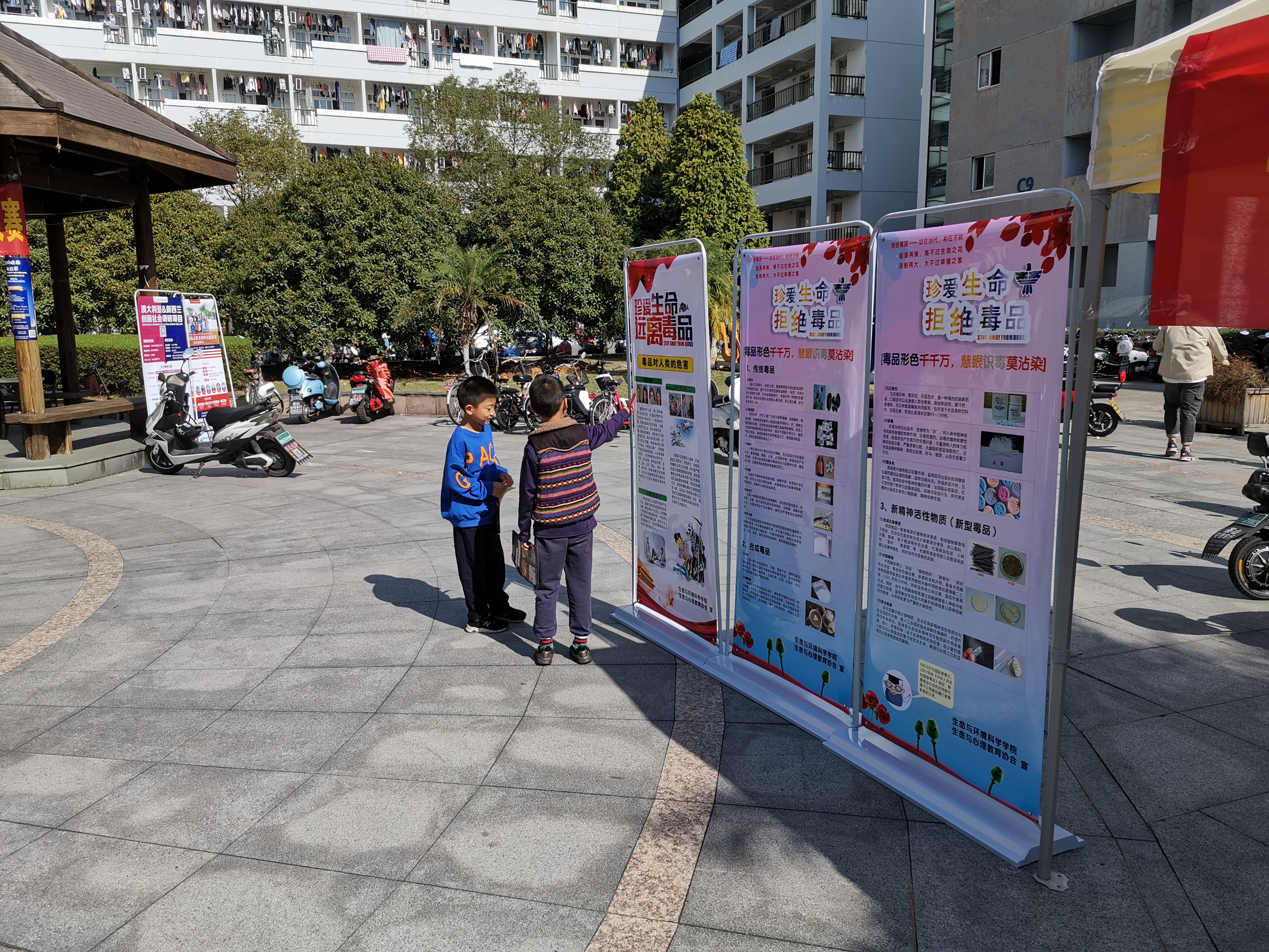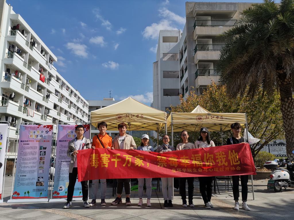2019年11月16日,生命与心理教育协会分别在A,C,E区开展了“毒害千万家,禁毒幸福你我他”禁毒宣传活动。活动现场气氛活跃,志愿者们积极宣传禁毒安全知识,对周边路过的同学、老师、小朋友都进行了详细地讲解。通过此次活动,既让参加讲解的志愿者们深刻认识到了禁毒的重要性,同时也让过往人群了解了禁毒方面的知识。