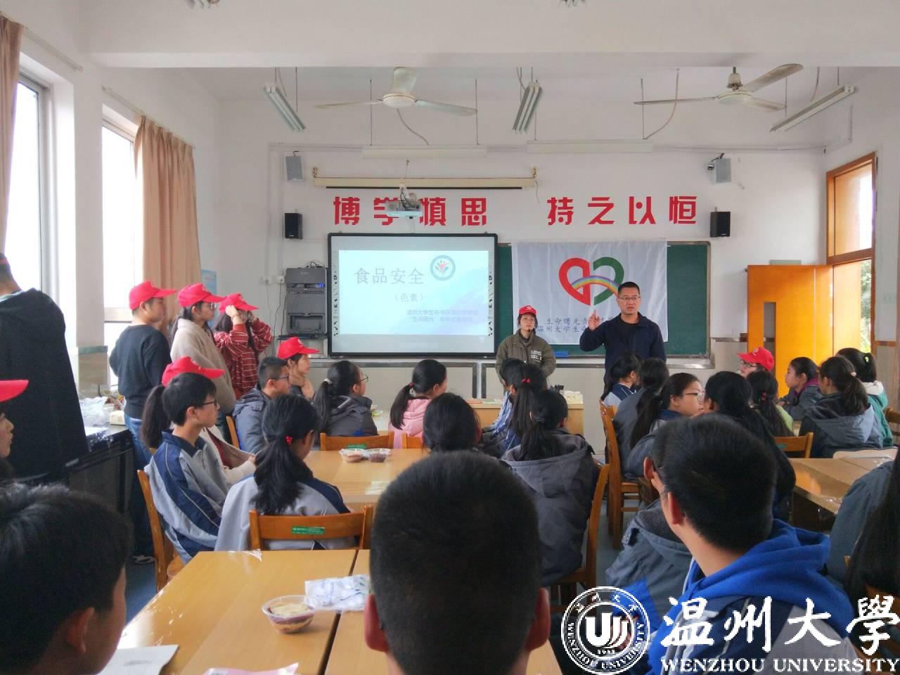 2019年12月25日,伟德国际1946源于英国“生命曙光”青年志愿者社的志愿者们来到南白象中学开展暖冬系列食品安全的志愿活动,为同学们讲解食品安全的相关知识,协助同学们动手制作天然色素面制品。