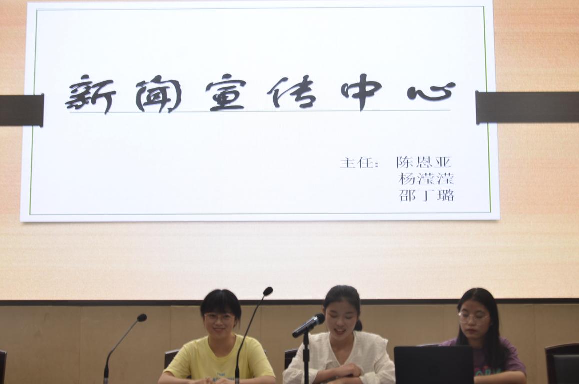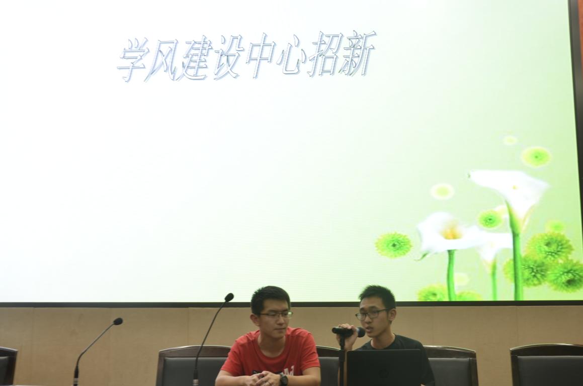 各中心主任们依次上台,将本中心的的职能、组织构架和特色以PPT或视频的形式给新生做了详细的讲解,并留下·自己的联系方式以便会后交流。各中心都具有强烈的风格,都希望通过此次宣讲会为中心注入新鲜的血液。主任们在台上热情洋溢,神采飞扬的展示环节博得大一新生一阵阵喝彩。