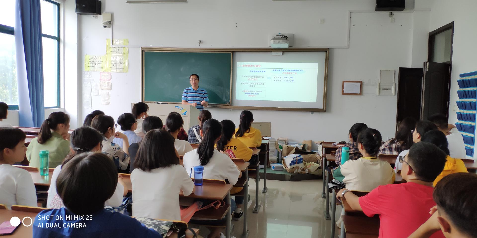环境科学专业负责人王奇老师以专业简介、课程体系构建、学习要求和就业前景四个方面对学生进行了针对性的专业介绍,希望学生尽快完成“三个转变”,即青年向成年的转变、中学生向大学生的转变以及家庭成员向社会角色的转变,要学会为自己的行为负责,学会适应大学的学习和生活,积极融入班集体。