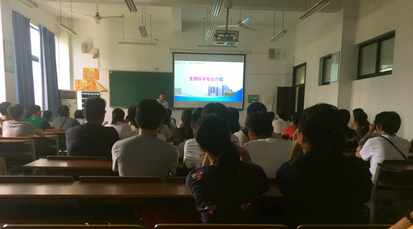生物科学(师范)专业负责人陶月良老师通过视频播放伟德官网生物科学专业招生视频为引题,通过从专业的发展、培养目标、主要主干课程、教学实施、申请学位要求以及就业方向等方面向新生进行详细讲解,使学生对所学专业有了清晰认识和理解,尽快速适应大学生活和学习,同时也对毕业后的去向有了一定了解,坚定了学生的学习信心,指明了奋斗方向。